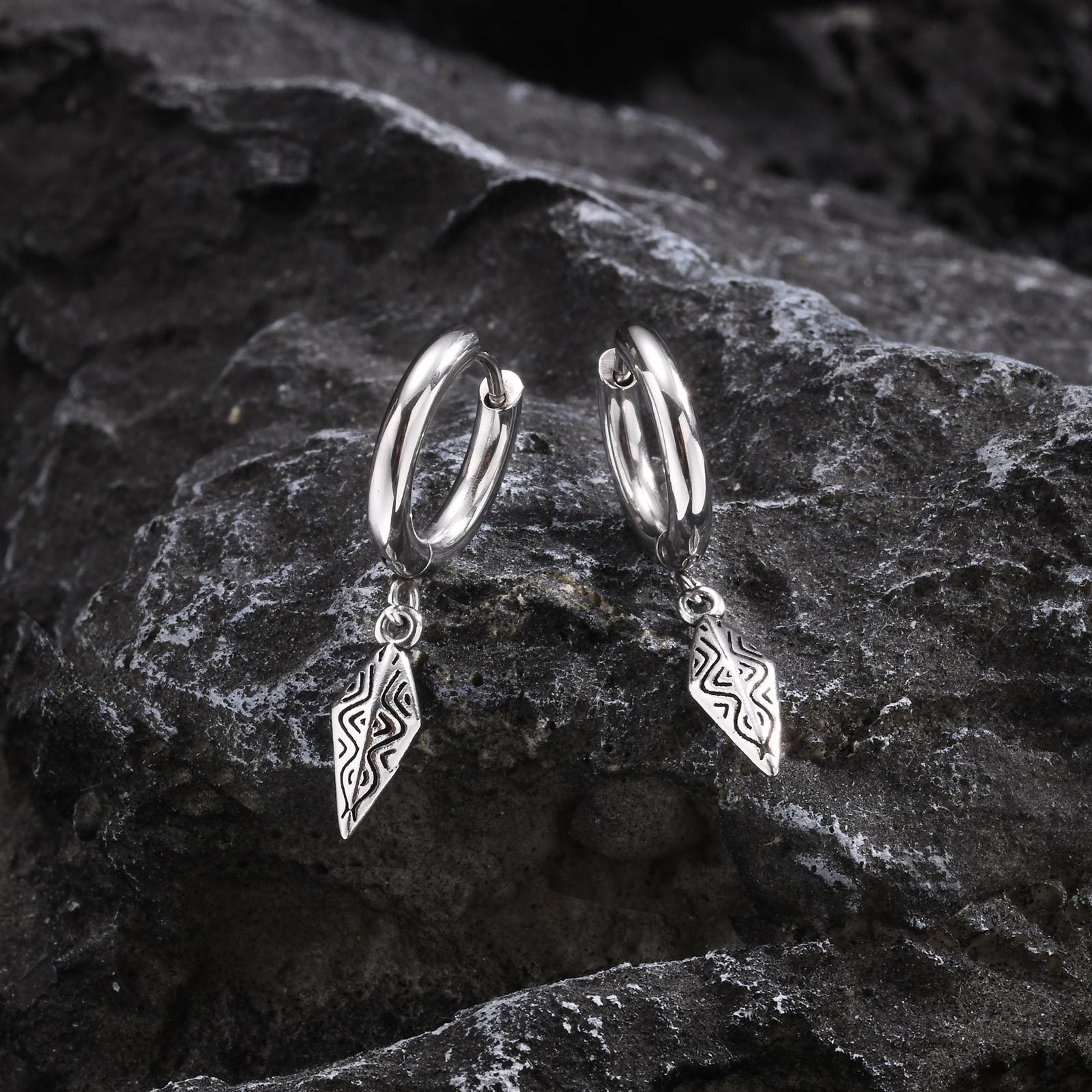 Kemstone Stainless Steel Earrings – Men’s Silver Punk Dangle ED747