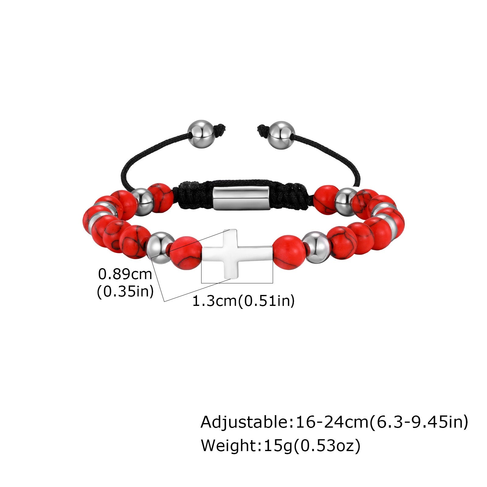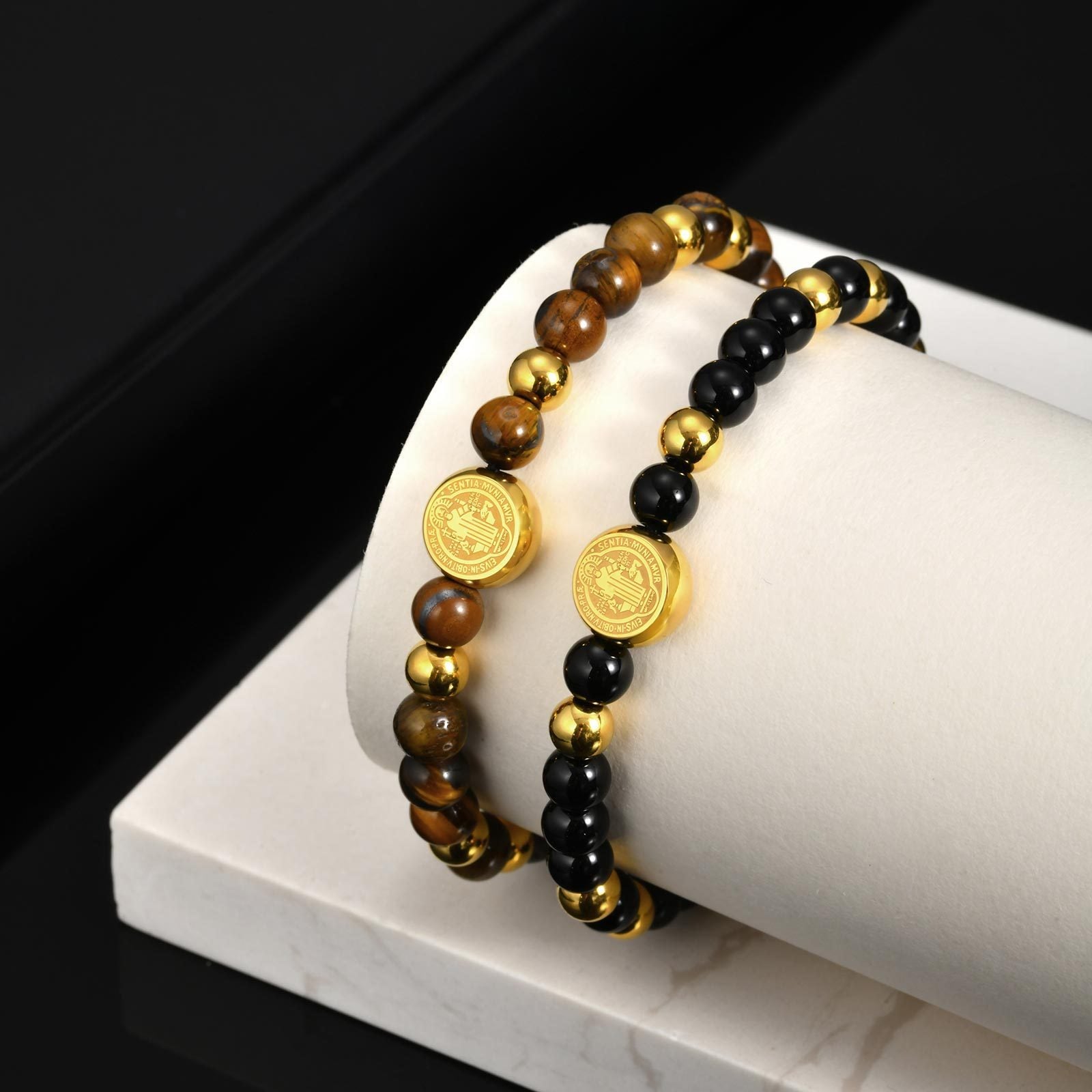 Kemstone Stainless Steel Engraved Coin Beaded Bracelet for Men – Natural Stone Adjustable BR-2354