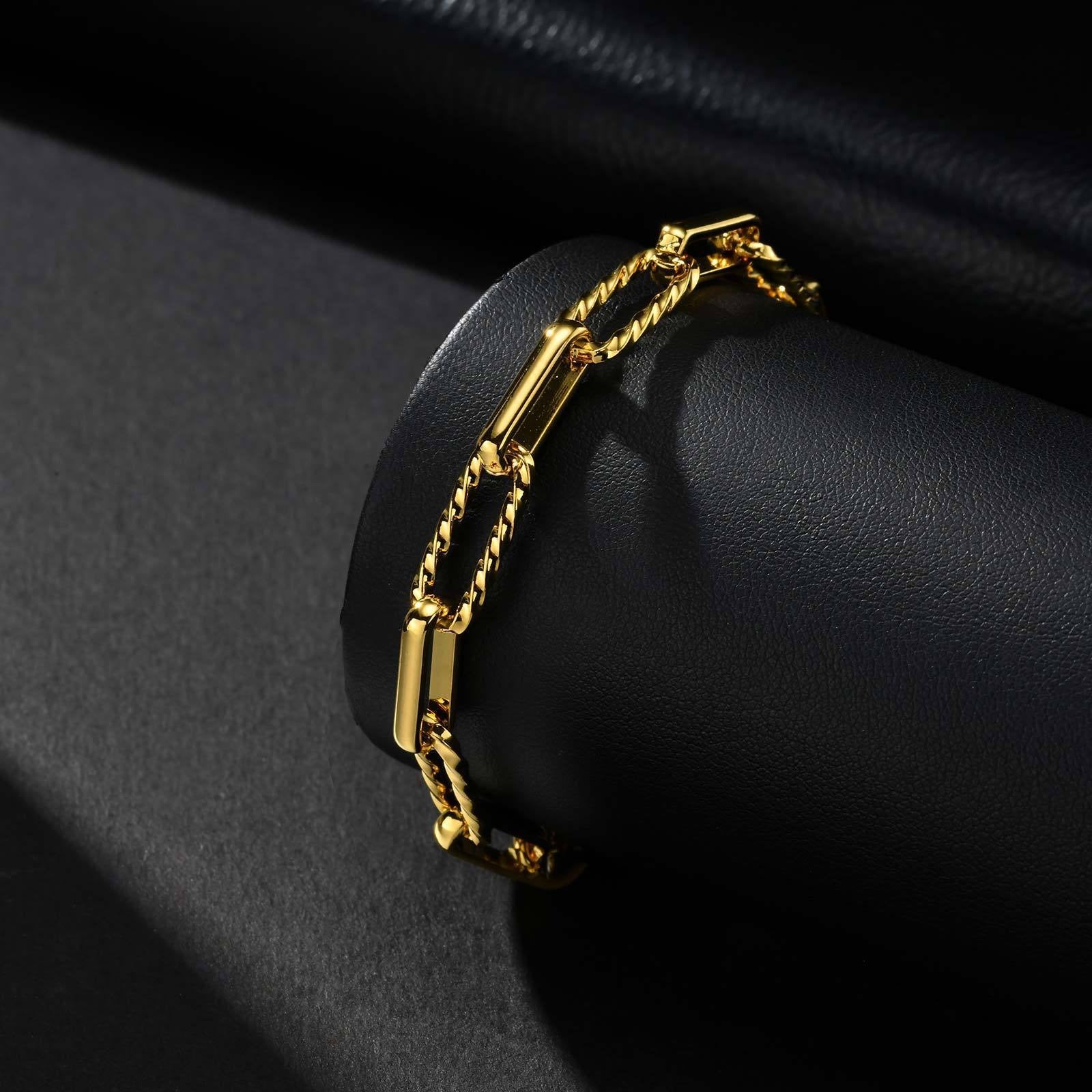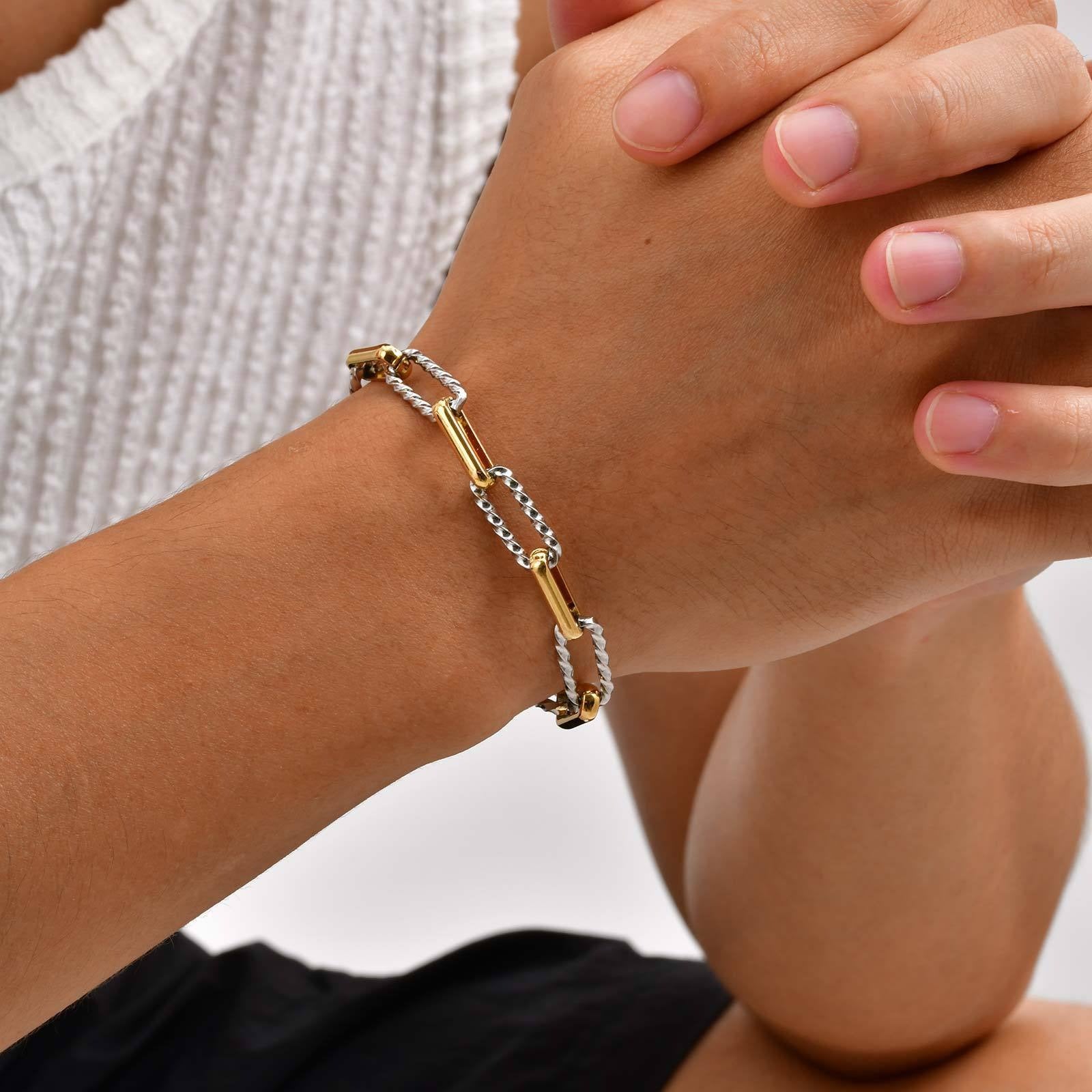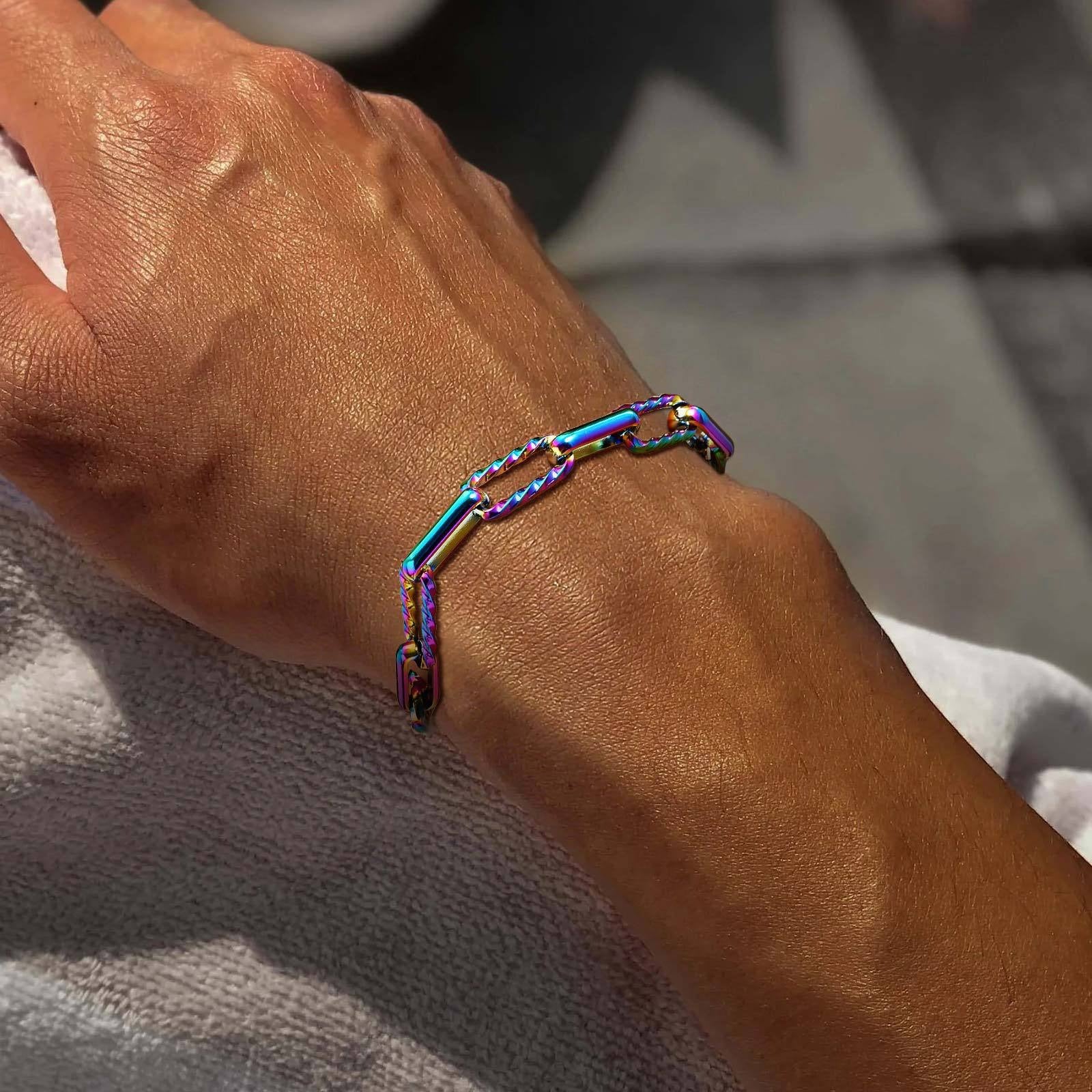 Wear this stainless steel handcrafted link chain bracelet for men, adding modern style to any outfit. The unique link structure offers strong, lightweight presence for daily wear.