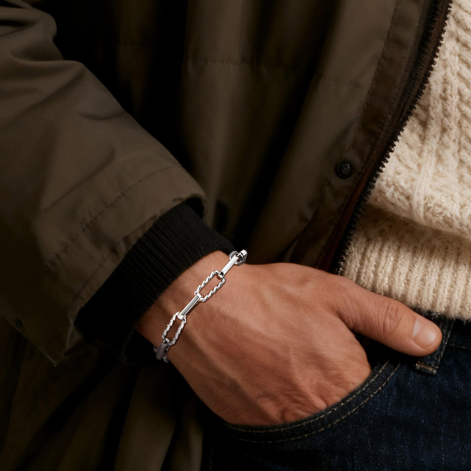 Each link is meticulously handcrafted, creating a sturdy and visually appealing structure that adds a bold statement to your style without feeling heavy.