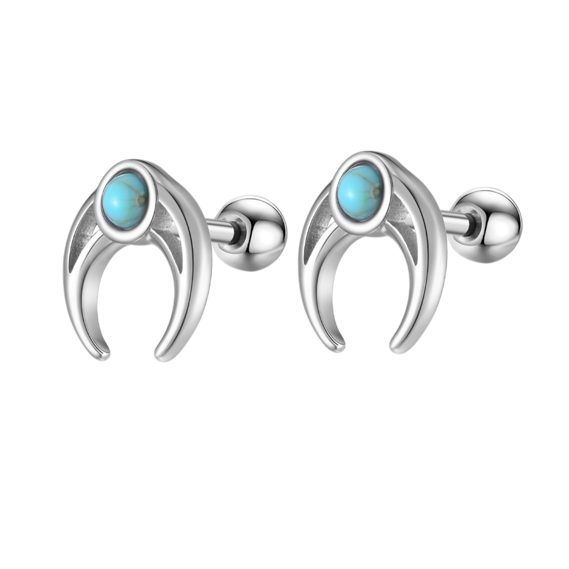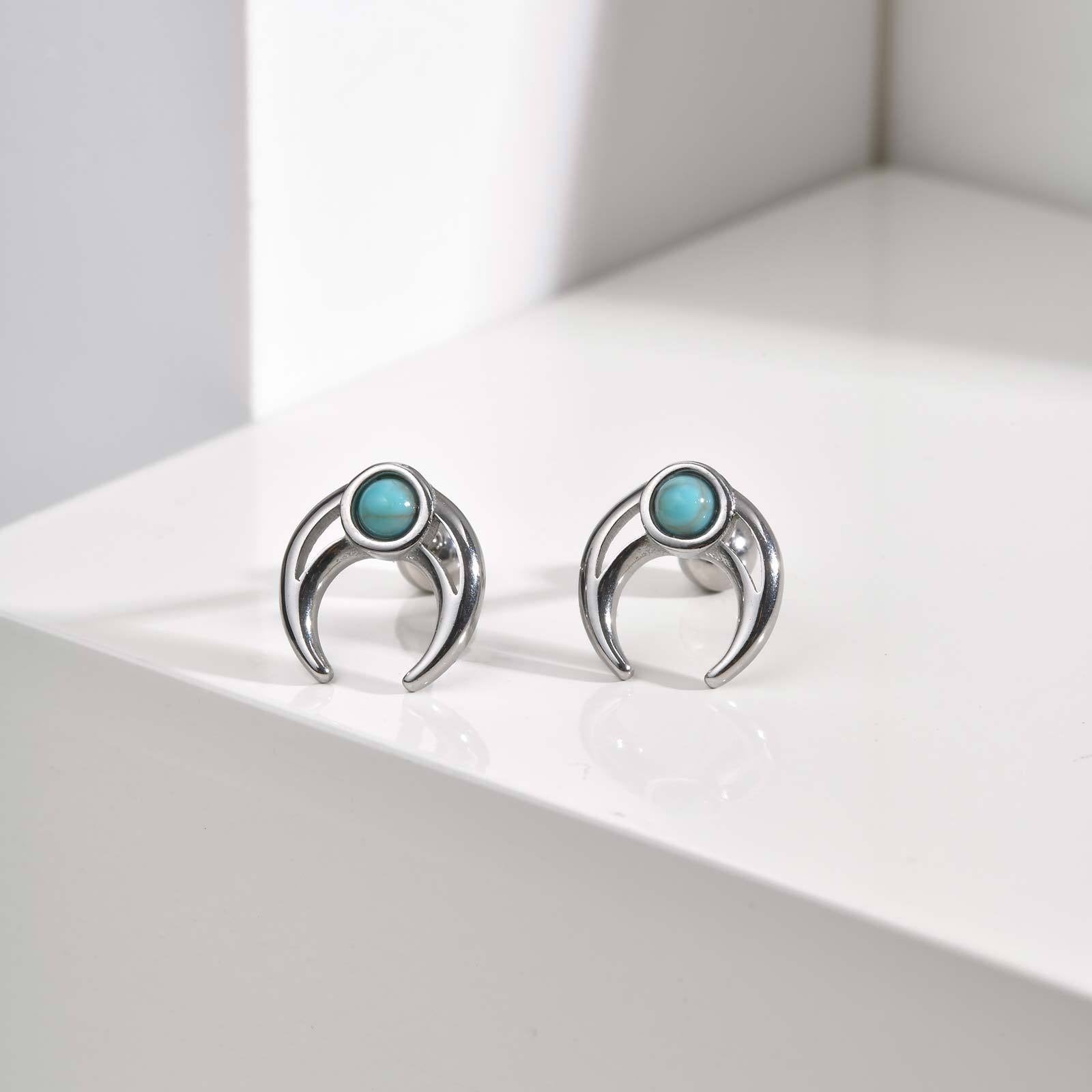 Wear sharp detail with this stainless steel moon stud earring for men, featuring a turquoise accent and compact shape designed for comfortable everyday punk styling.