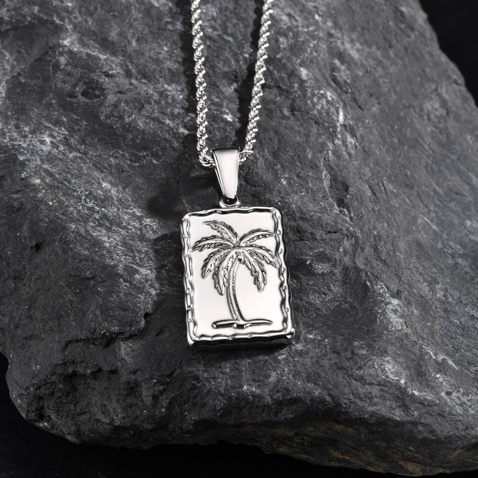 Kemstone Stainless Steel Palm Tree Pendant Necklace – Vacation Style for Men PN-2149