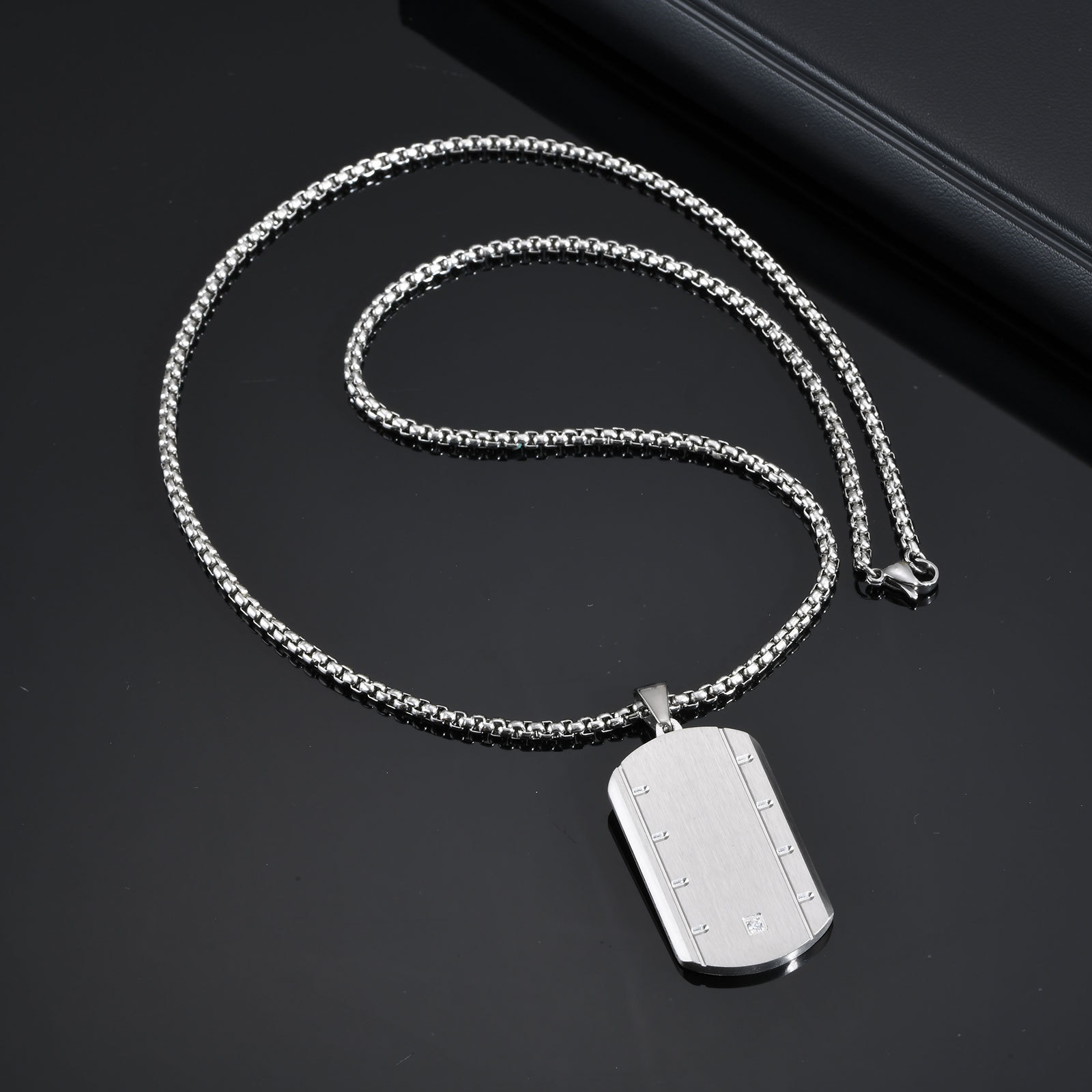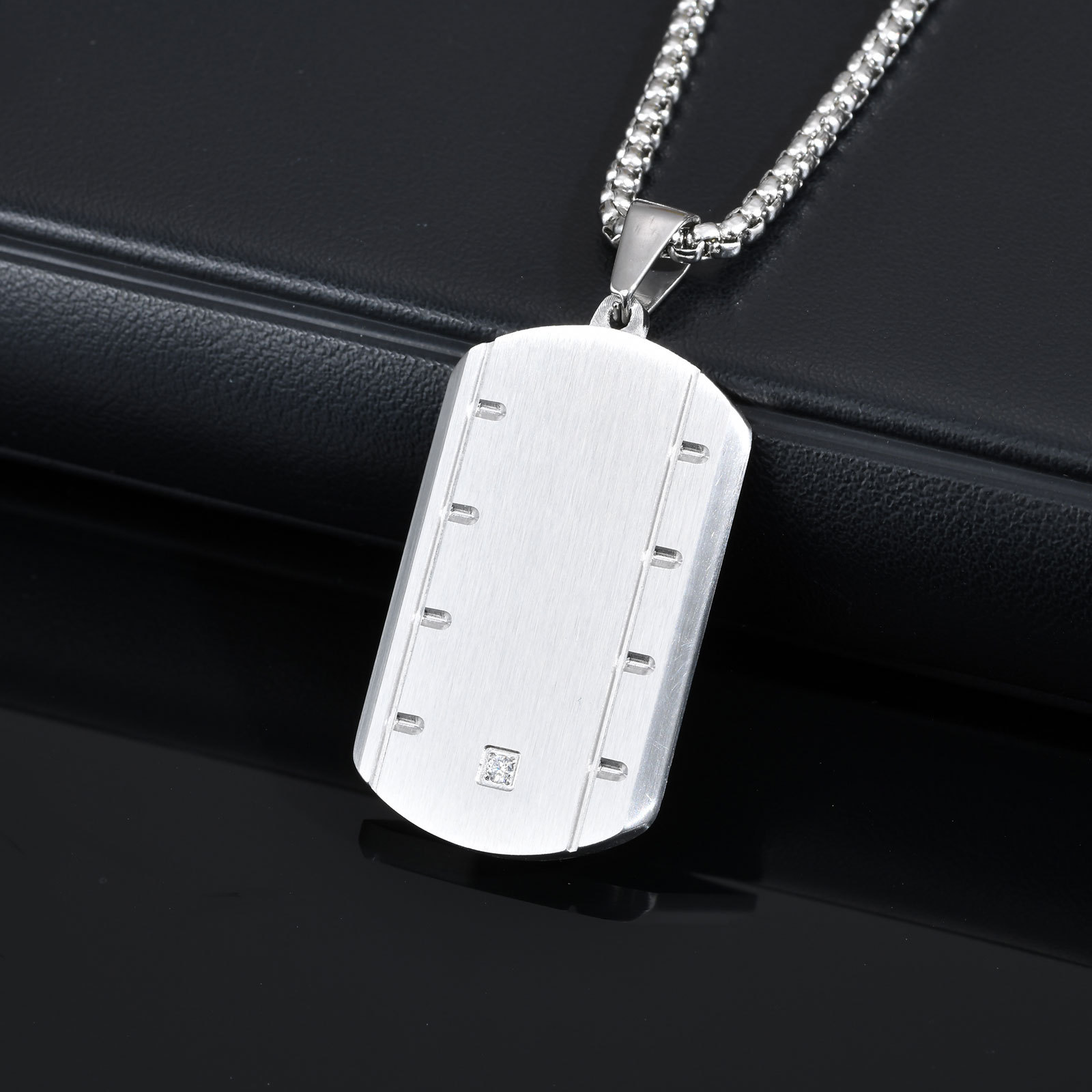 Stainless Steel Square Pendant Necklace for Men – Beveled Edge with Single Cubic Zirconia PN-2109