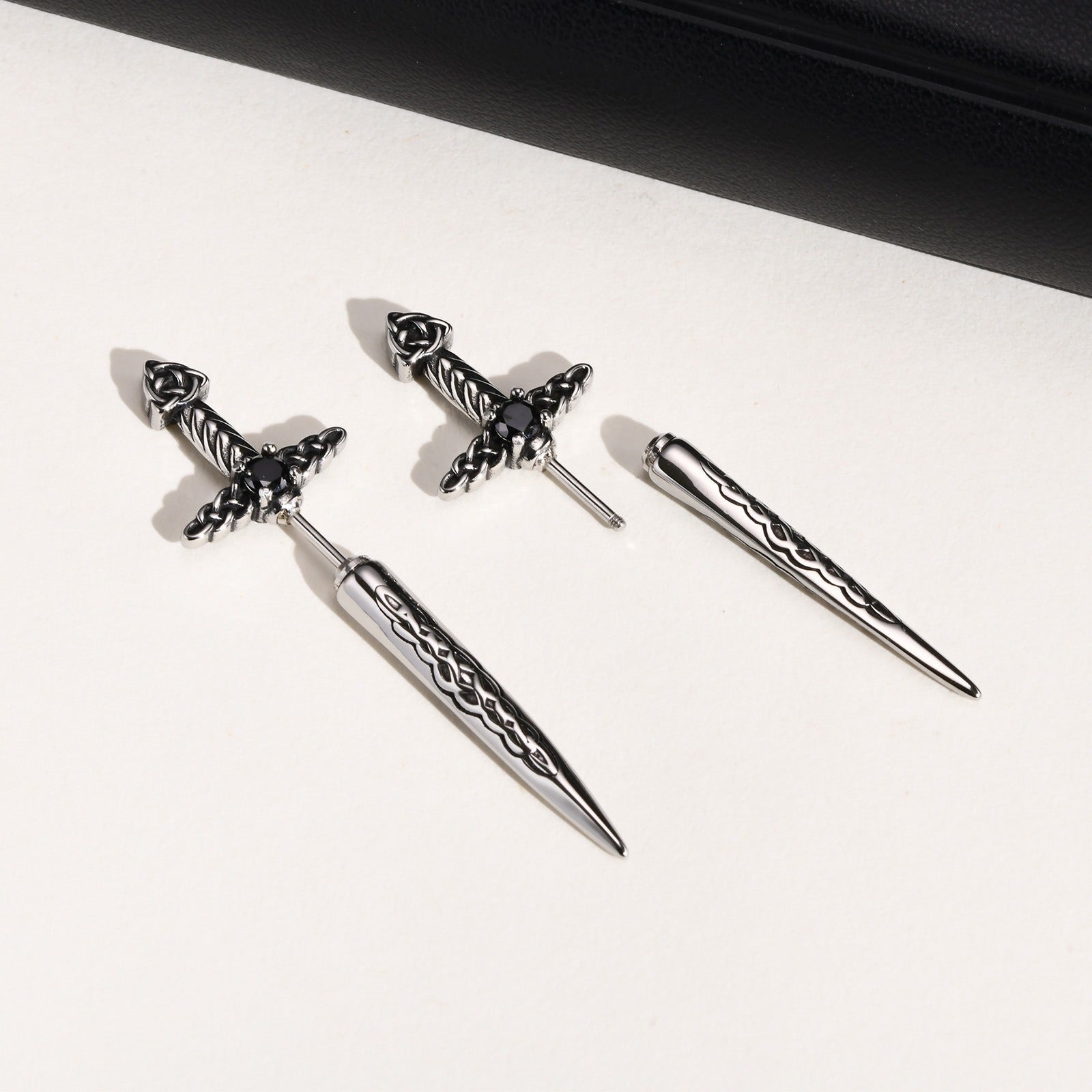 ⚔️Celtic Sword Design – Detailed dagger-inspired stud symbolizing courage, unity, and individuality in men’s gothic style.