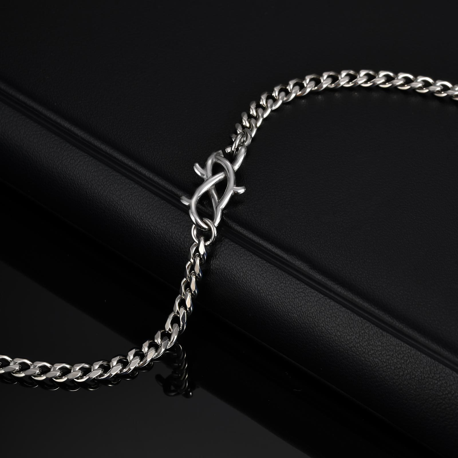 Crafted with distinctive thorn-shaped links, creating a bold and daring appearance for a standout look.