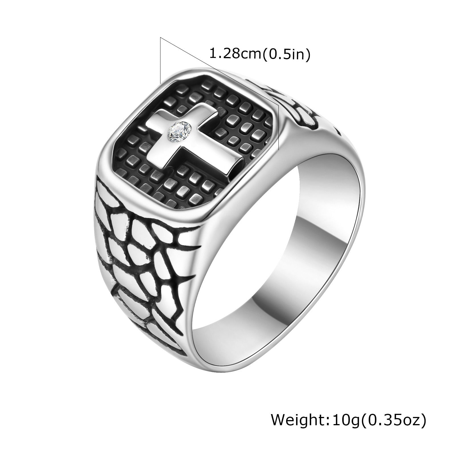 Kemstone Stainless Steel Vintage Cubic Zirconia Cross Ring for Men C-828