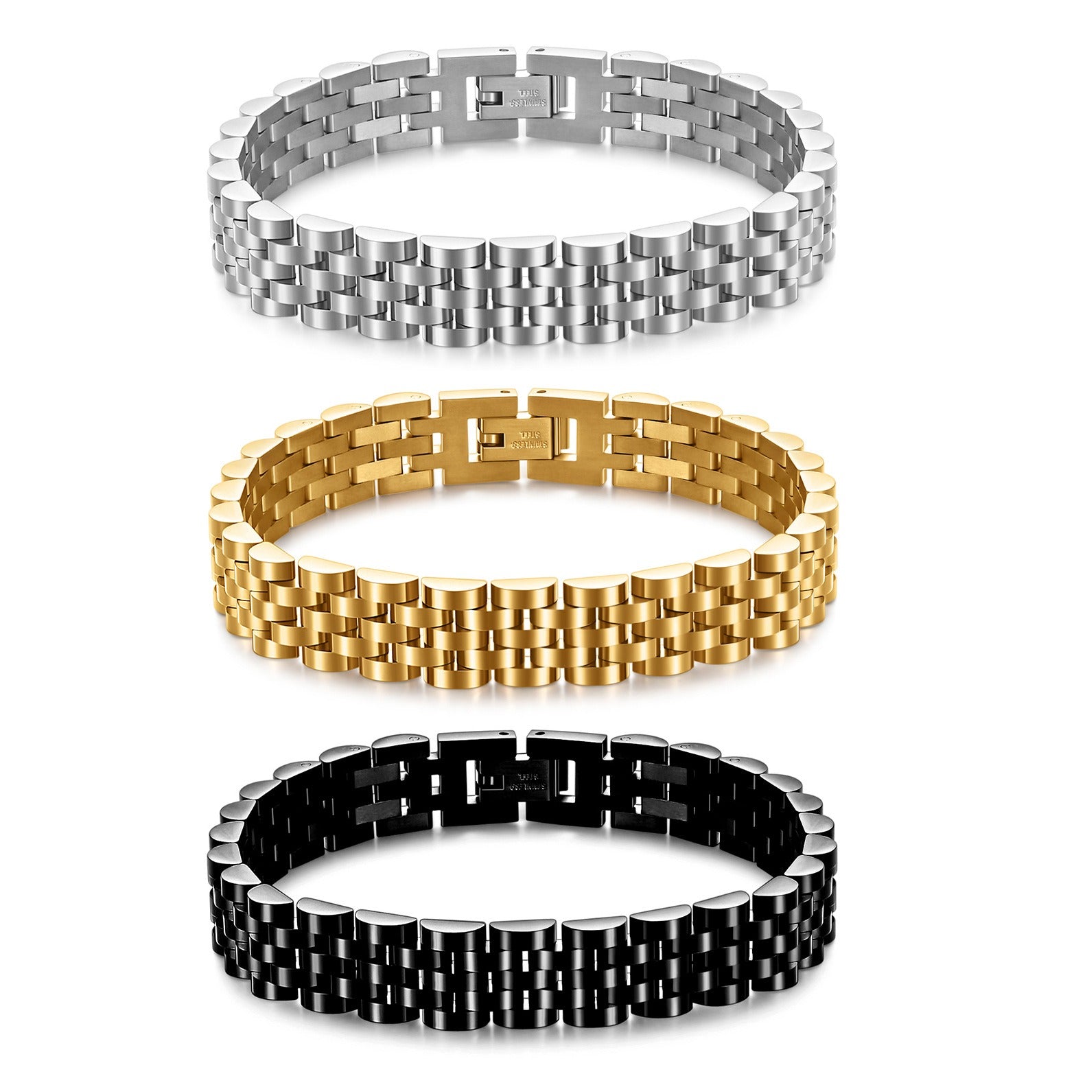 Kemstone Men’s Stainless Steel Watch Link Bracelet – 10mm Adjustable Chain Jewelry AD1633