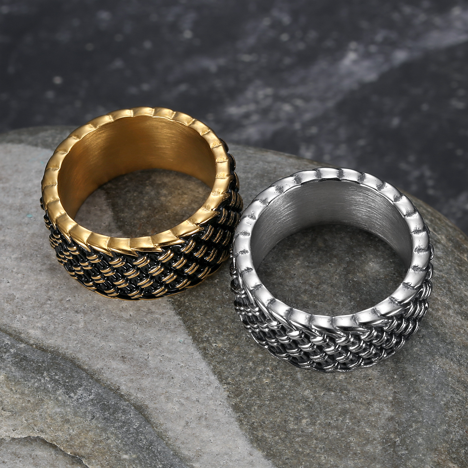 Kemstone Stainless Steel Woven Ring for Men – Vintage Punk Wide Design TR0457