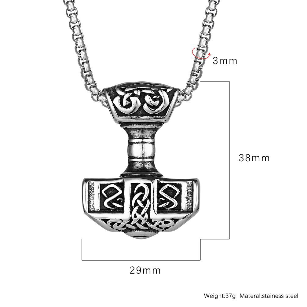 Kemstone Thor Hammer Necklace – Stainless Steel Viking Mjolnir Pendant for Men 60cm Chain K-PT498