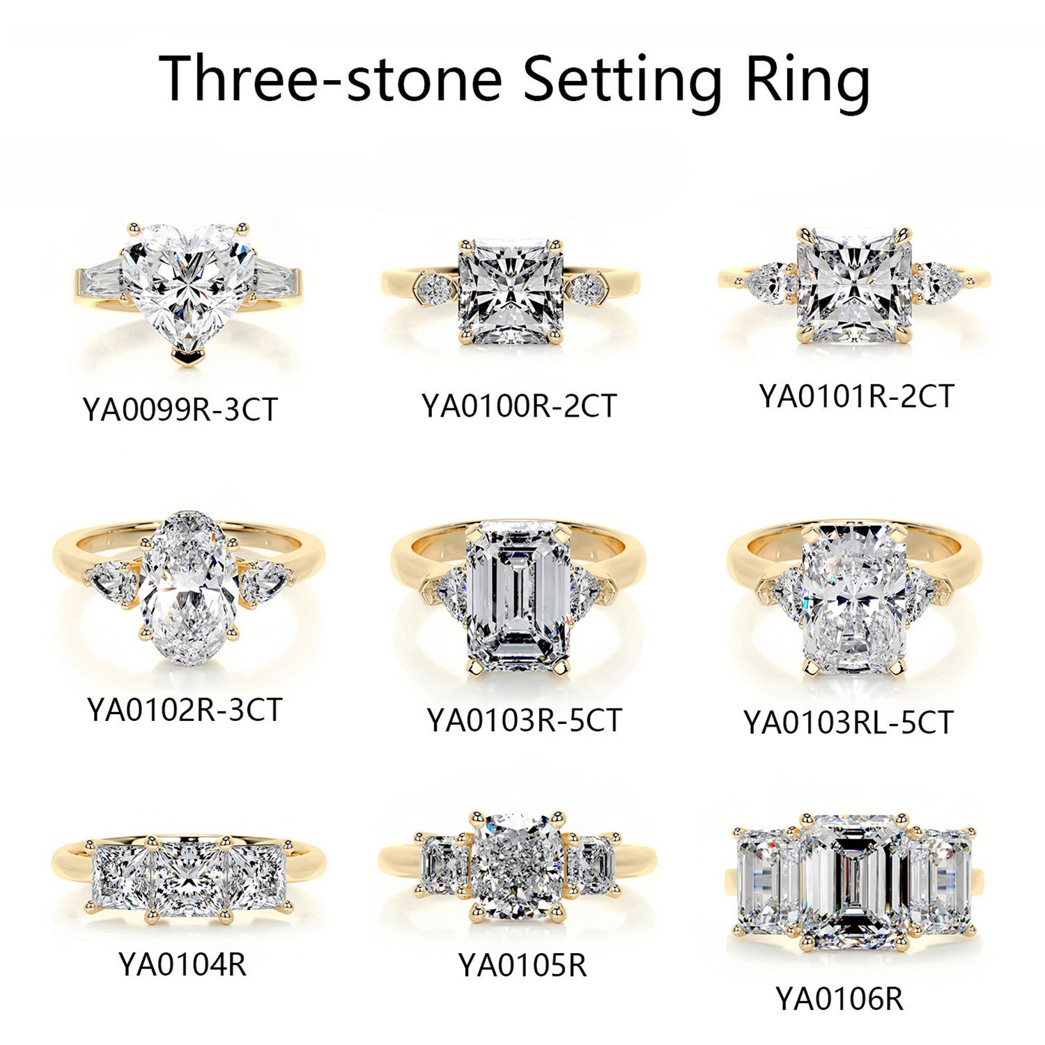Three-Stone Moissanite Engagement Ring for Women | 2–5CT Heart, Oval, Princess, Emerald Cuts