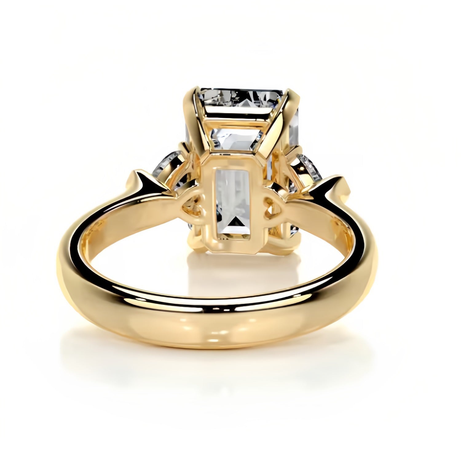 - 5CT Emerald-Cut Three-Stone Moissanite Ring