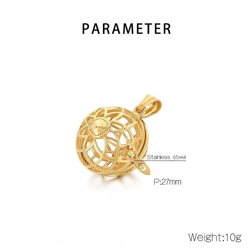 Kemstone Titanium Steel Aroma Locket Pendant – Hollow Sphere Necklace KP79561G-TOM