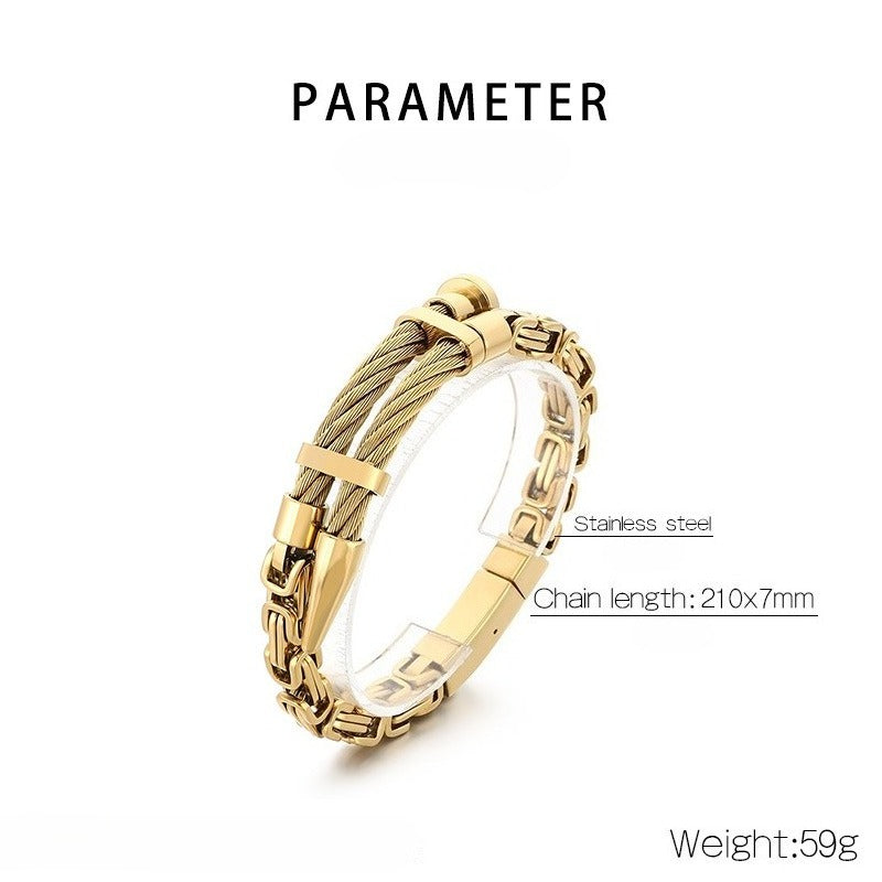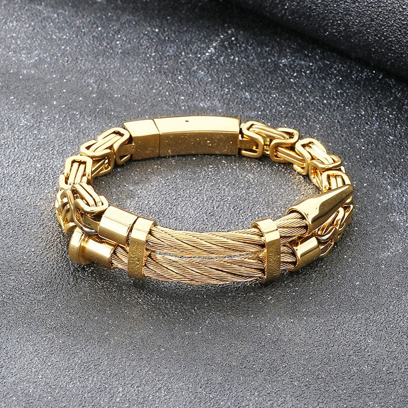 Own your edge with Kemstone’s titanium steel cable nail bracelet for men. A bold punk-chain build and polished cable details deliver strength, style, and daily confidence in gold, silver, black, or antique black.