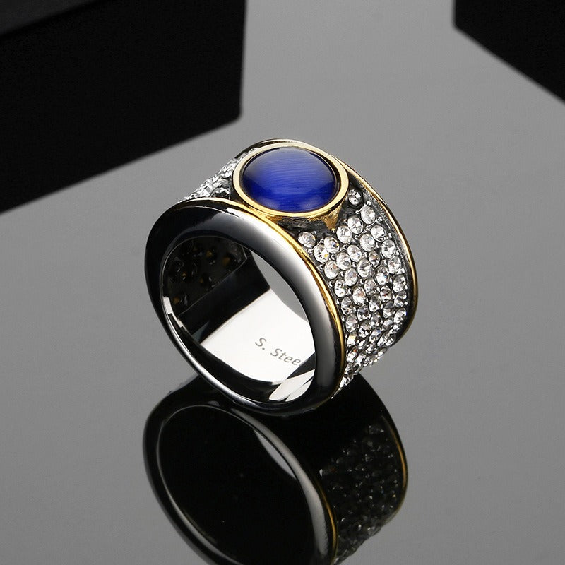 Kemstone Titanium Steel Cat Eye Ring for Men – Blue Stone Hip Hop Style KR114130-GC