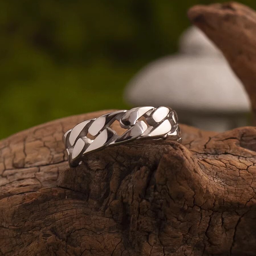 Kemstone Titanium Steel Chain-Link Ring for Men & Women – 7mm Width NW-JZ320