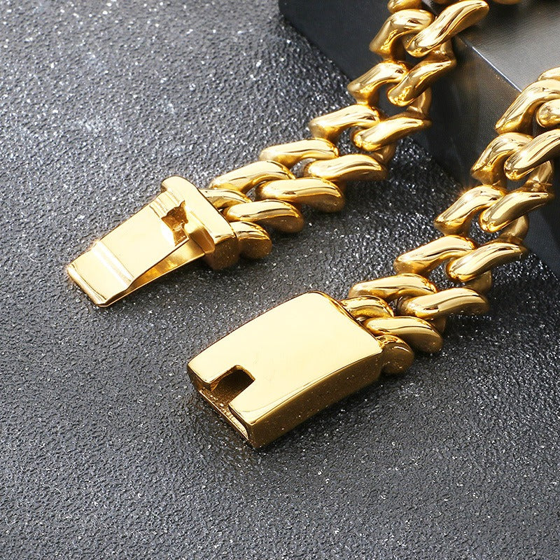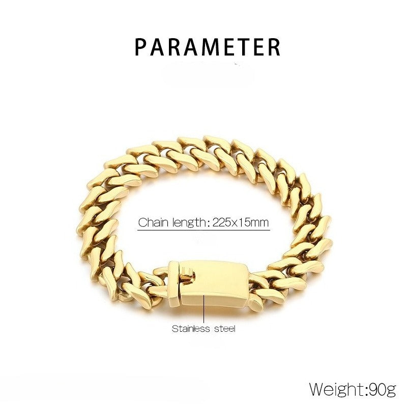 Kemstone Titanium Steel Cuban Chain Bracelet for Men – 15mm Polished KB204380-KJX
