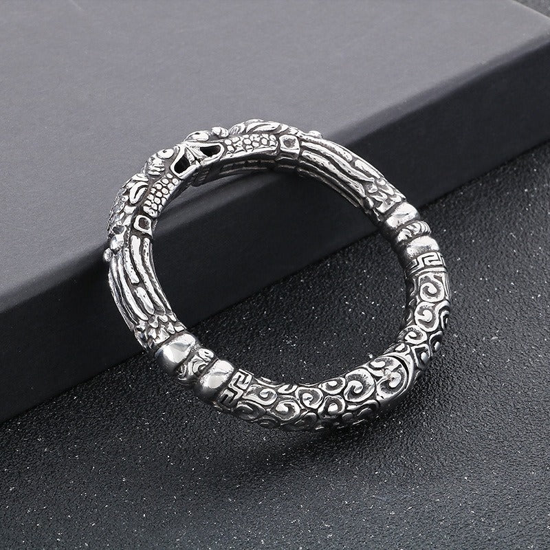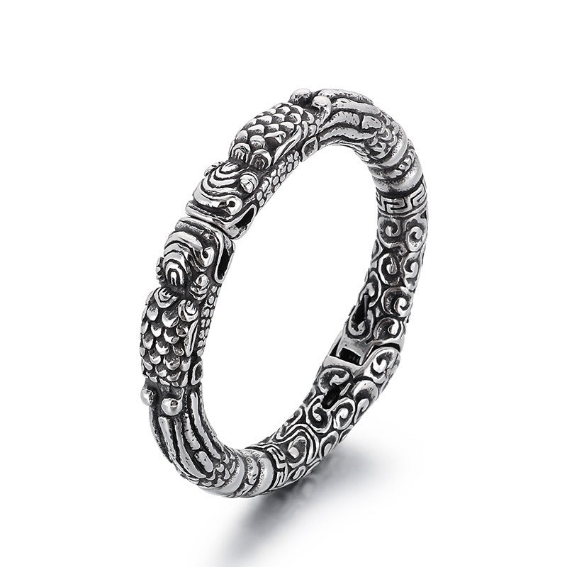 Wear grounded structure with this titanium steel double Pixiu wide bangle bracelet for men. Cast cloud patterns and solid weight create balanced wear and a stable daily presence.