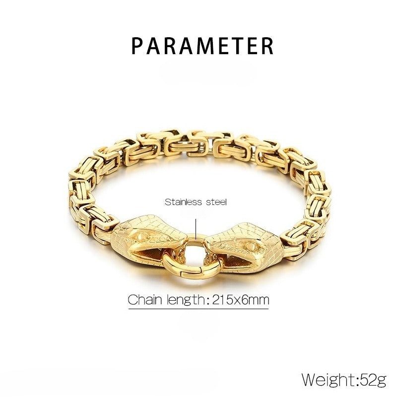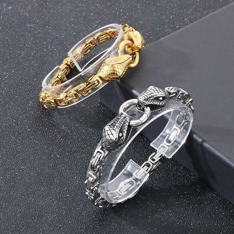Precisely carved snake head detail pairs with a tight imperial chain structure for a clean, focused look.