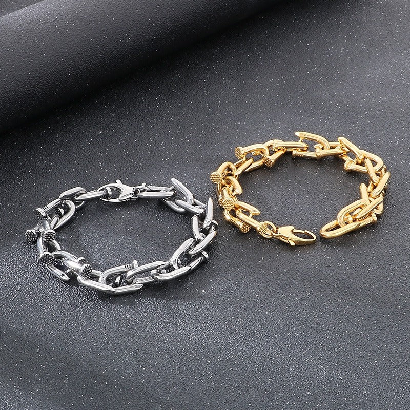 Kemstone Titanium Steel Nail Link Bracelet for Men – Vintage Punk Style KB185405-KJX