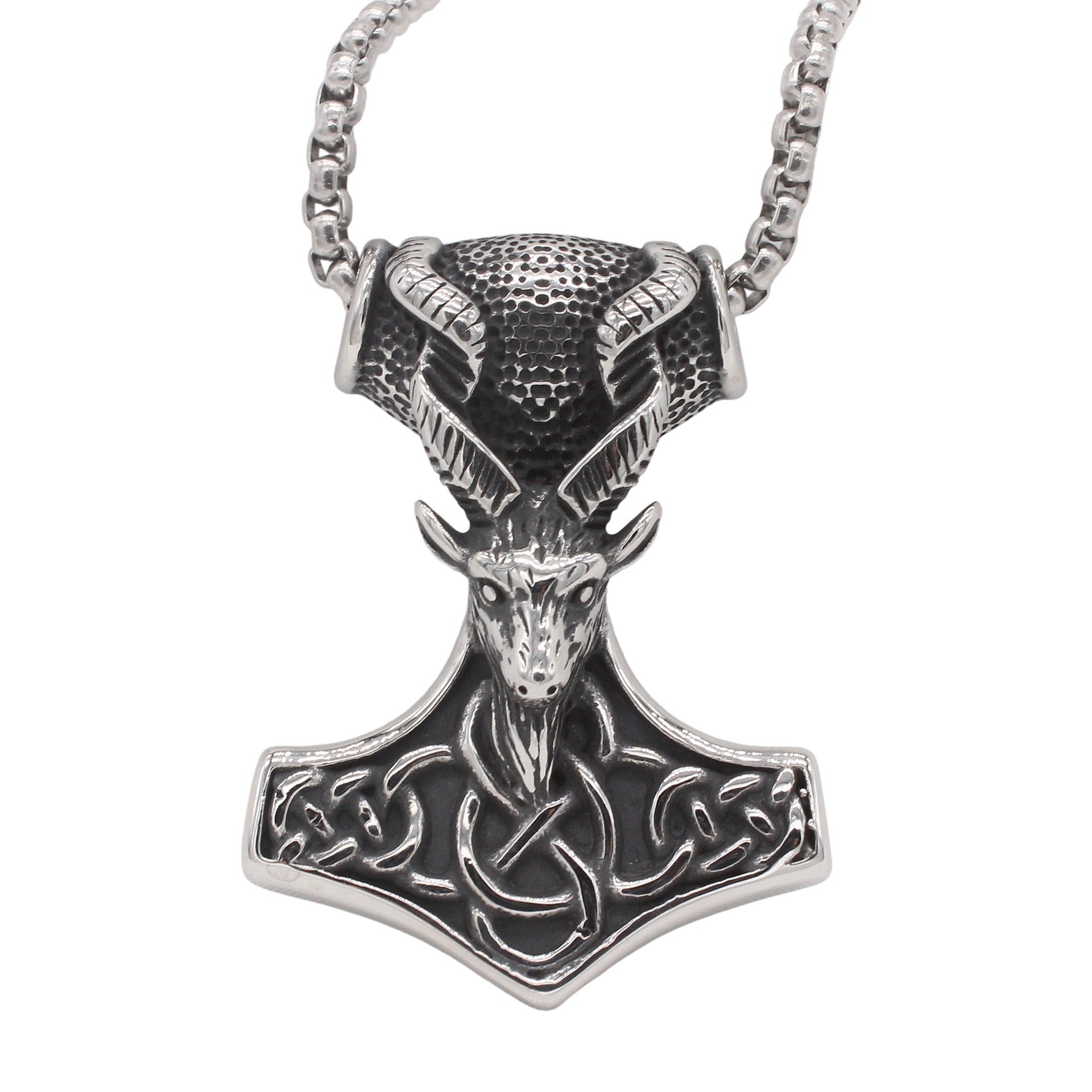 Kemstone Titanium Steel Viking Ram Pendant Necklace for Men Vintage P1532