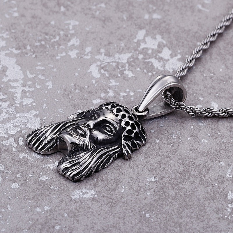 Wear a titanium steel vintage warrior pendant necklace for men. Sculpted detail and an oxidized finish express resilience, focus, and quiet strength for daily wear.