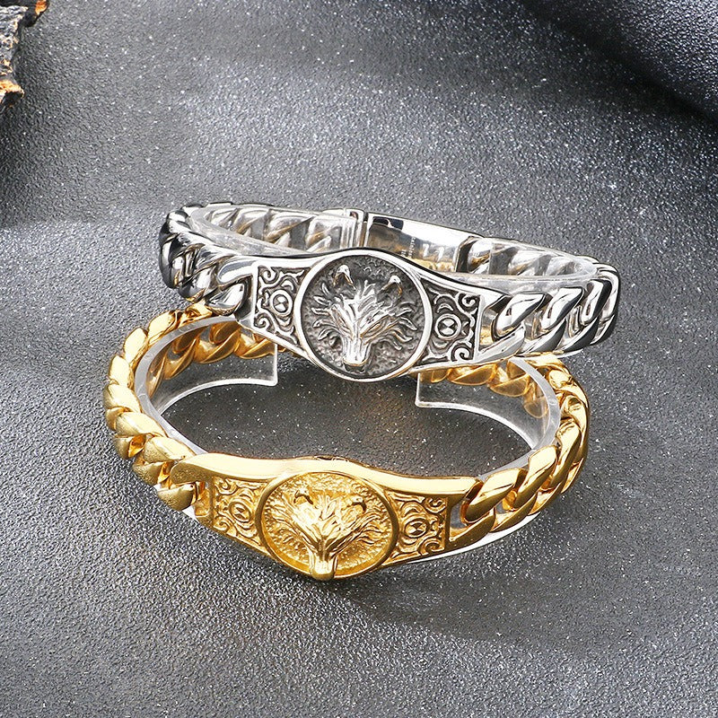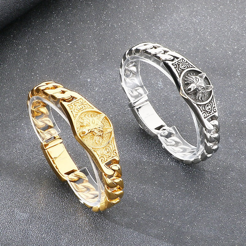 Kemstone Men’s Wolf Head Bracelet – Titanium Steel Cuban Chain 220mm KB205184-KJX