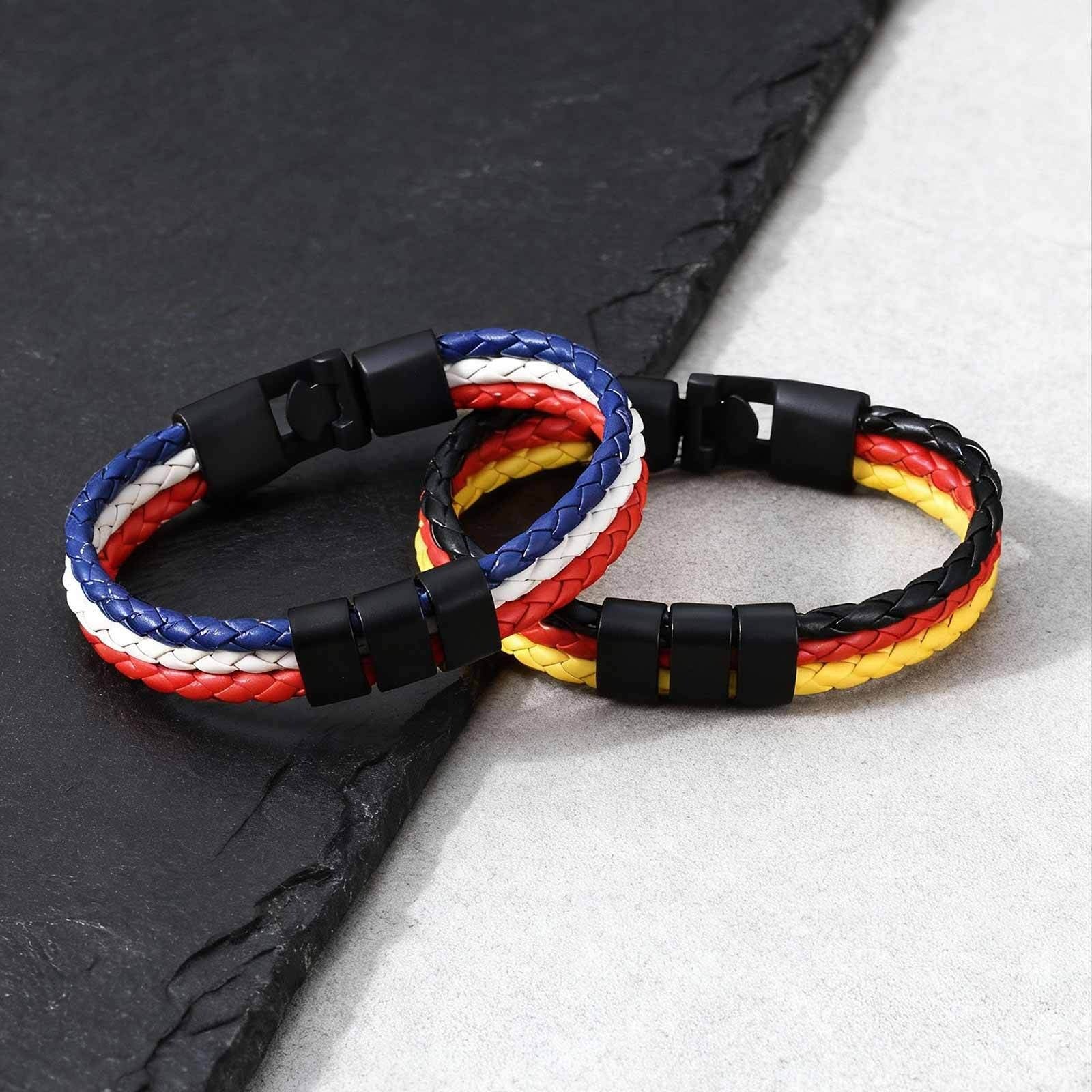 Layer bold color into your everyday men’s style with this triple layer braided leather bracelet. A street-driven design built for movement, contrast, and confident self-expression.