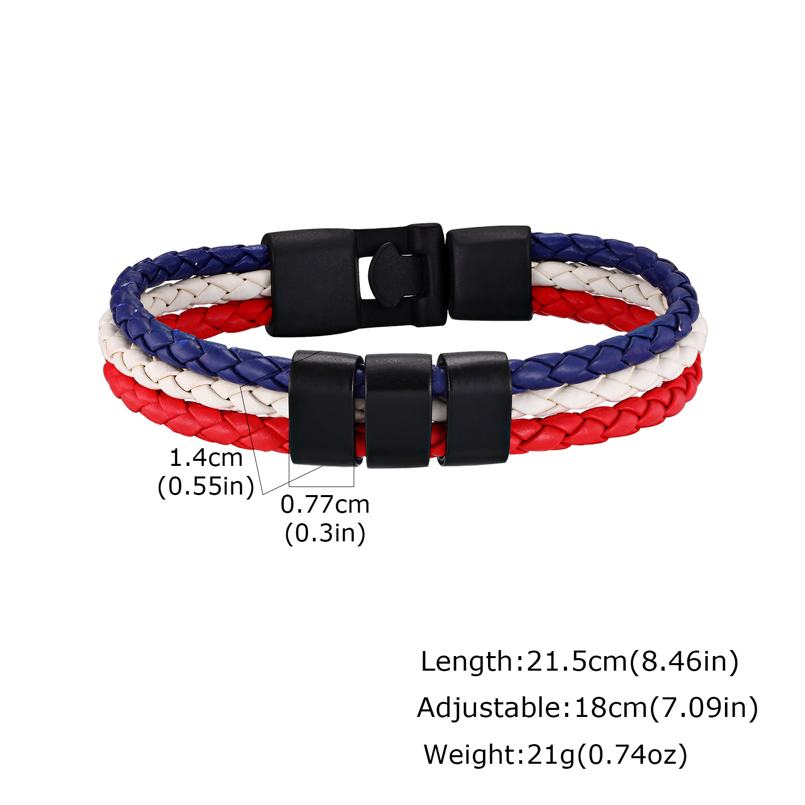 Bracelet length 21.5 cm (8.46 in), adjustable down to 18 cm (7.09 in) for a comfortable wrist fit.