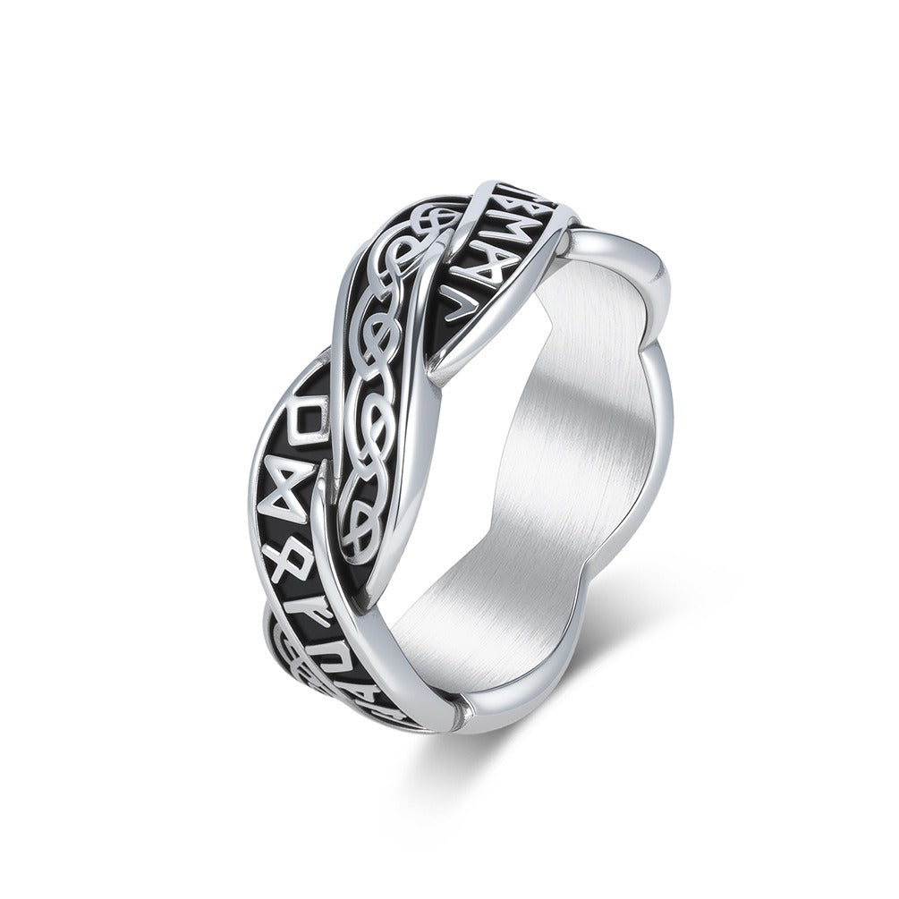 Kemstone Stainless Steel Viking Rune Knot Ring – Woven Band Design for Men & Women K-R119