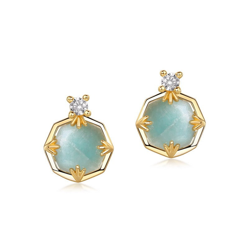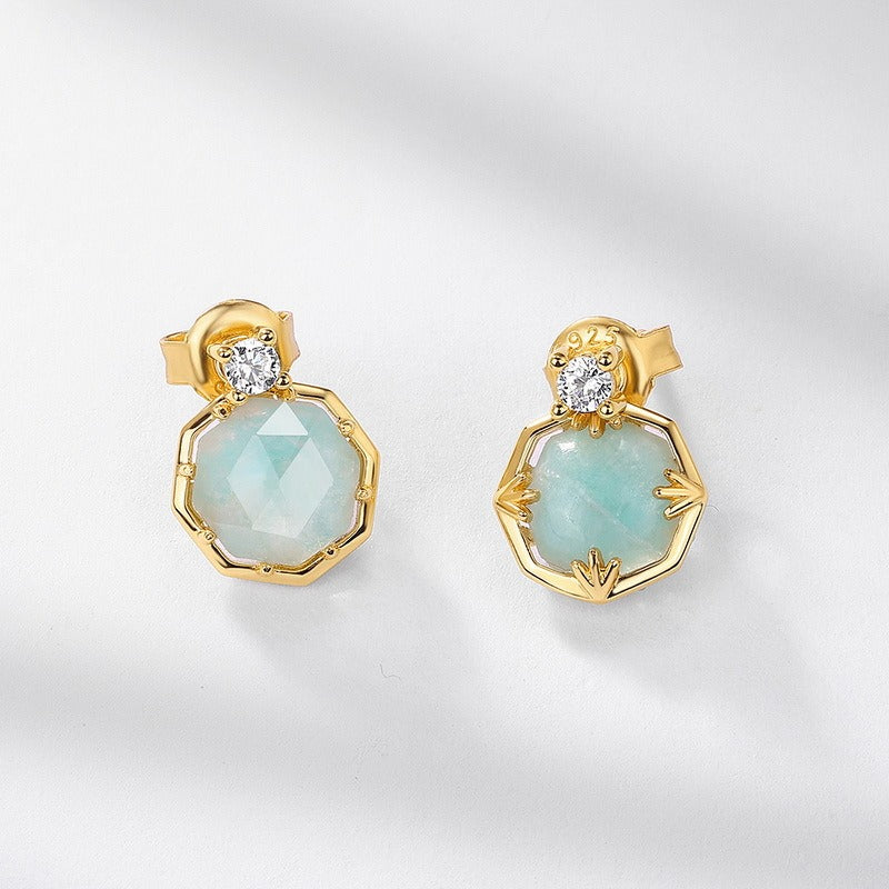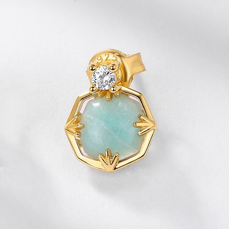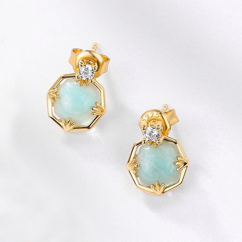Descubre la combinación perfecta de elegancia vintage y moderna con nuestros nuevos aretes de lujo de amazonita. Estos exquisitos aretes están elaborados en plata de ley S925 y bañados en oro de 10 quilates y esmalte, lo que les da un toque lujoso. La hermosa amazonita, combinada con cristales blancos, crea un diseño sofisticado y único. Ligeros, con tan solo 1,35 gramos, estos aretes son cómodos para el día a día. Con un tamaño compacto de 10 mm, ofrecen un look elegante y sobrio, convirtiéndolos en una adición versátil a cualquier colección de joyas. Realza tu estilo con estos impresionantes aretes y disfruta de un toque de elegancia atemporal.