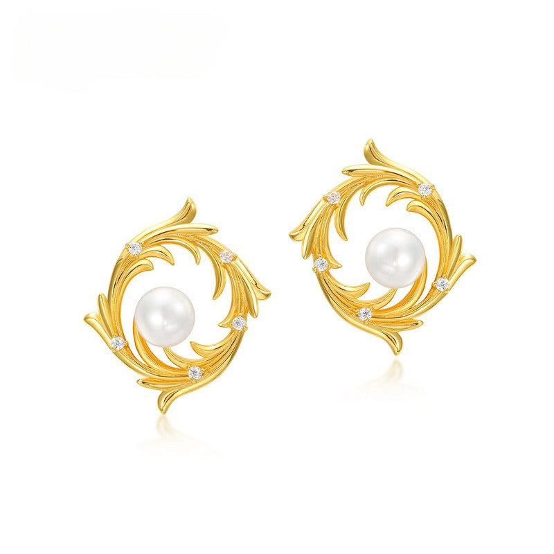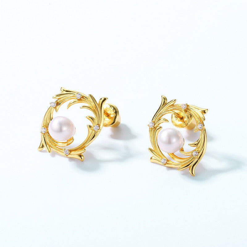Elegantes pendientes de perla de plata S925 hechos a mano por Kemstone: diseño original - Diseño vintage de lujo