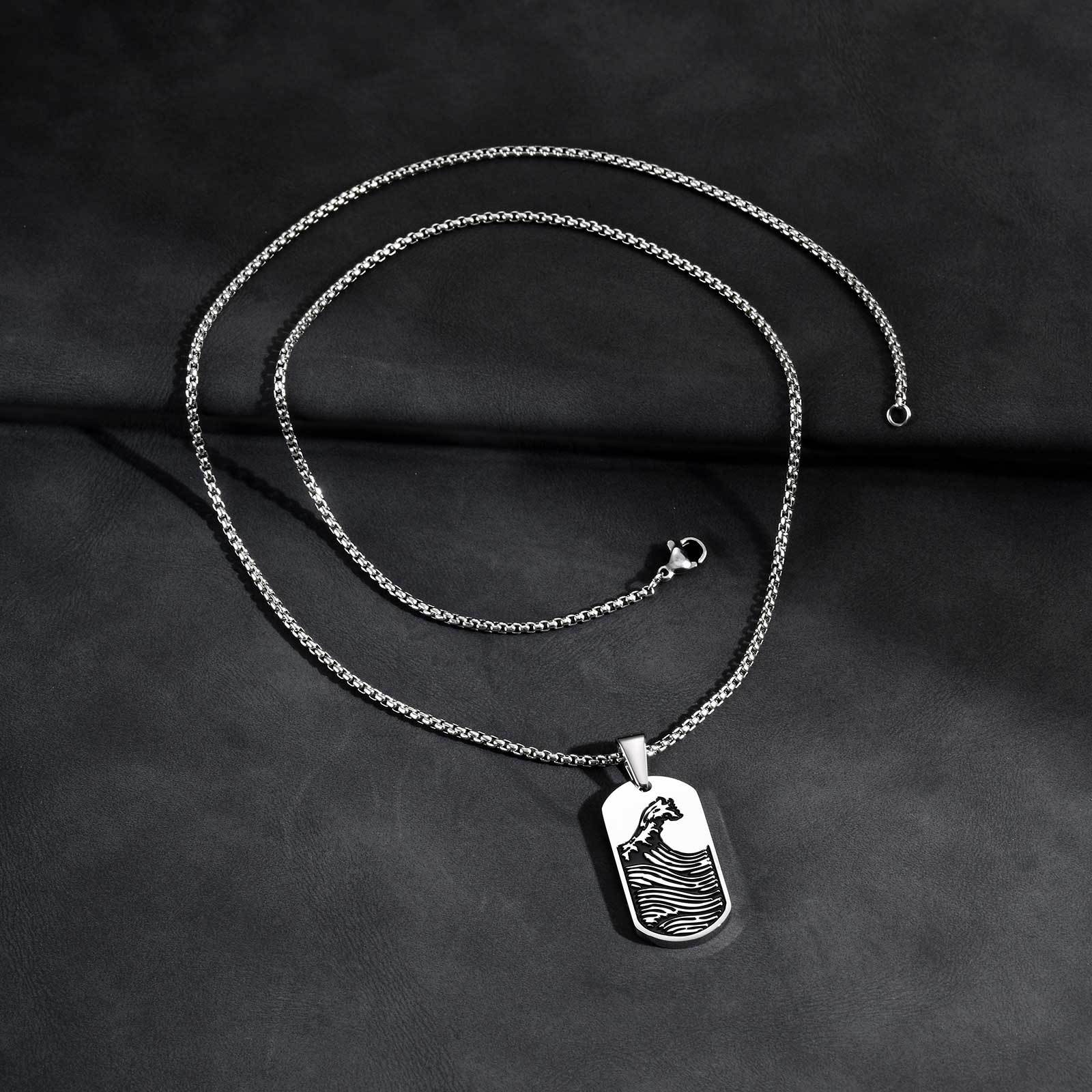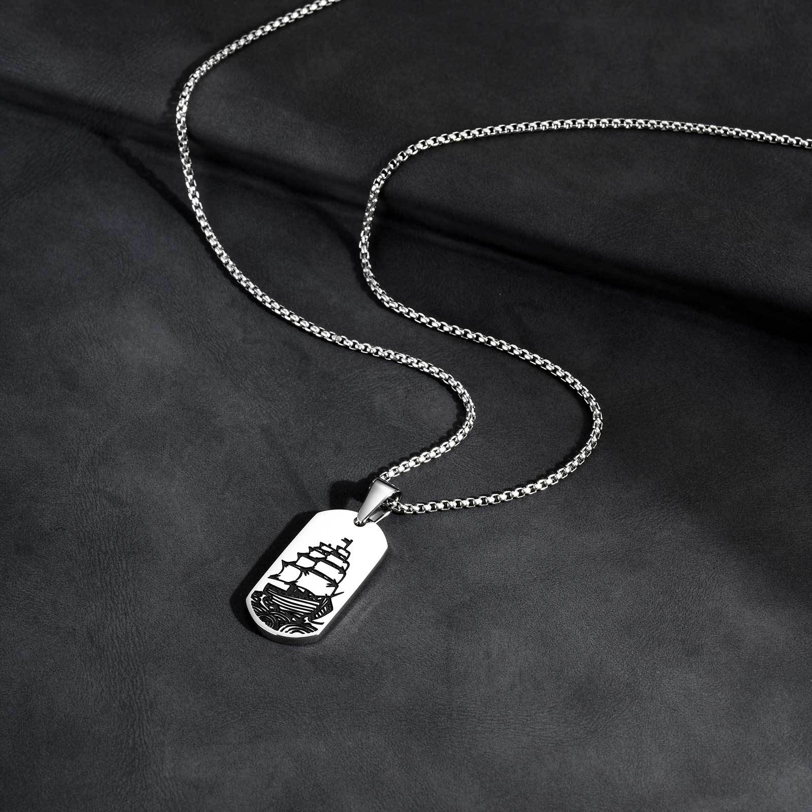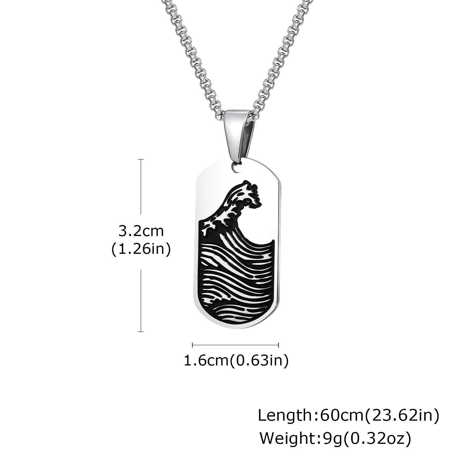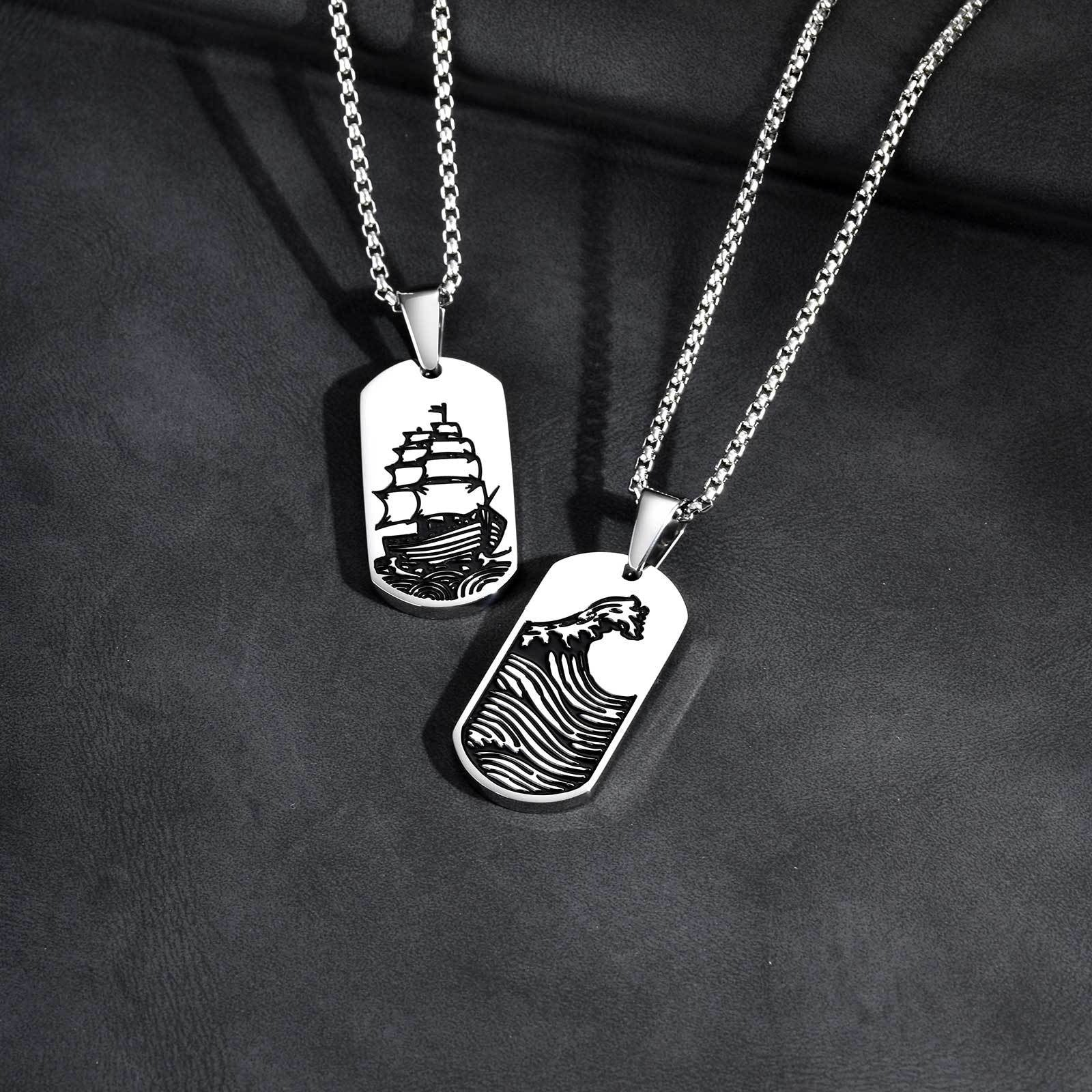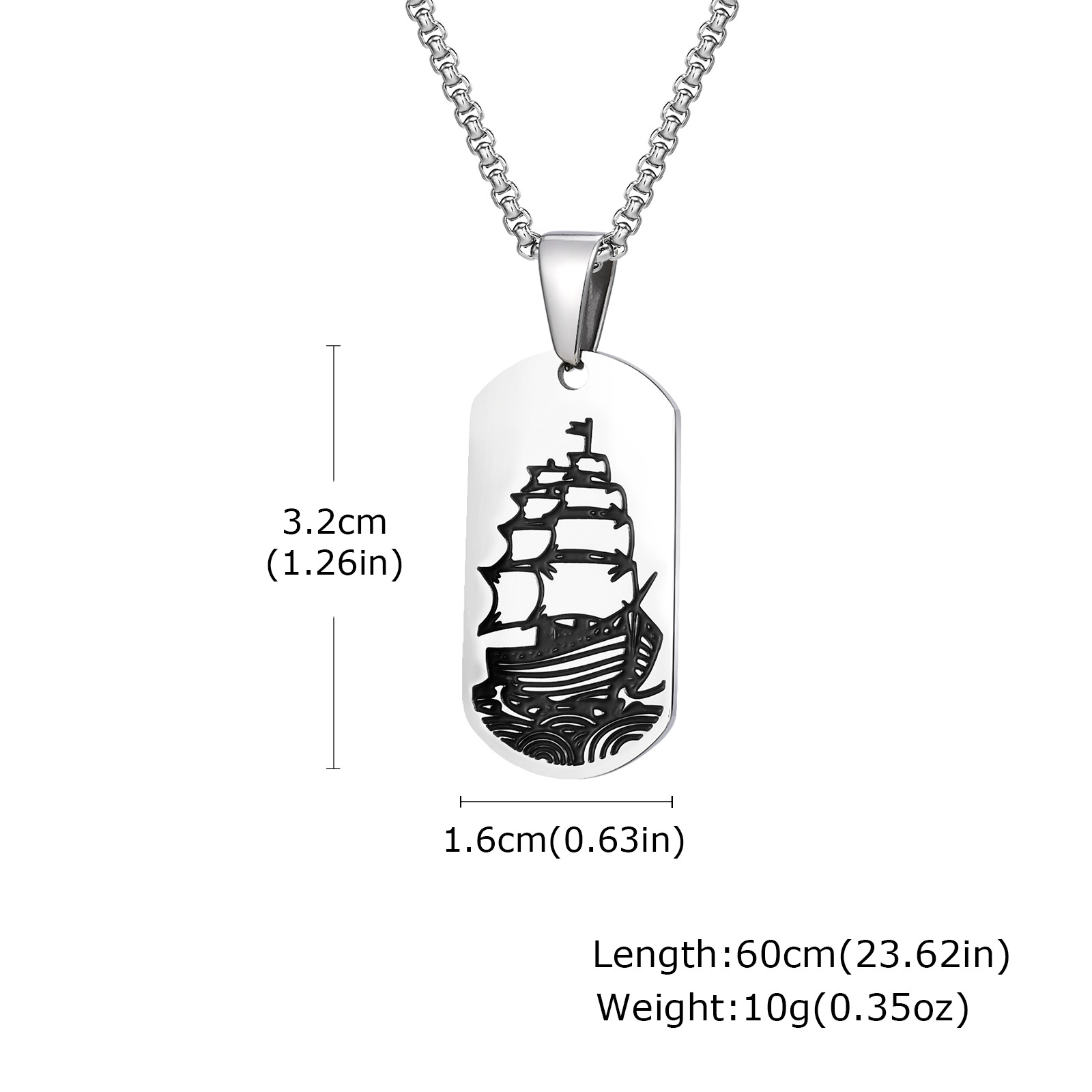 Stainless Steel Wave Tag Necklace – Black Etched Sailboat Pendant for Men PN-2168