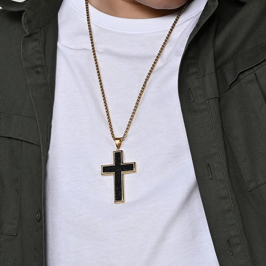 Kemstone Stainless Steel Two-Tone Cross Pendant Necklace for Men PN-2239