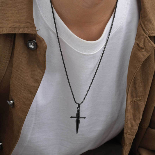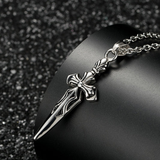 Kemstone Sword Cross Pendant Necklace for Men – Stainless Steel Silver K-PT155