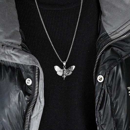 Kemstone Stainless Steel Skull Butterfly Pendant Necklace for Men – Gothic Design, Silver Gold Black K-PT542