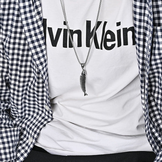 Kemstone Stainless Steel Fishbone Pendant Necklace for Men – Silver, Gold, Black K-PT434