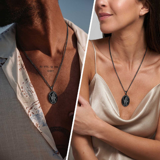 Kemstone Stainless Steel Oval Medallion Pendant Necklace for Men – Black Vintage 60cm PN-1665