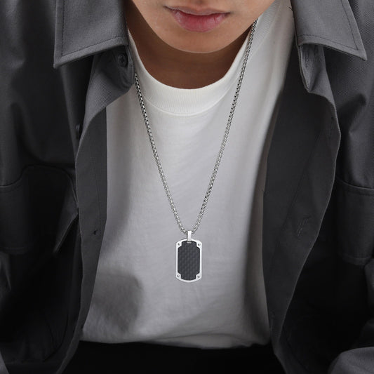 Kemstone Stainless Steel Rectangle Tag Pendant Necklace for Men – Carbon-Fiber Design PN-2085