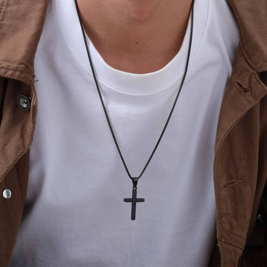 Kemstone Stainless Steel Brushed Cross Necklace for Men – Silver Gold Black PN-2078