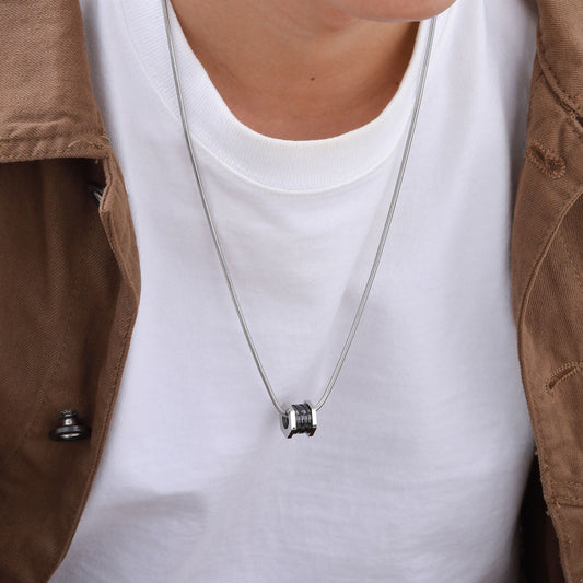 Kemstone Stainless Steel Black Rotary Cylinder Pendant Necklace for Men PN-2125