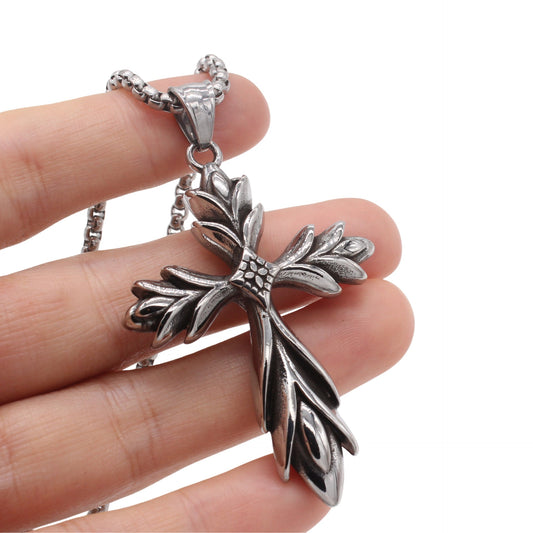 Kemstone Titanium Steel Cross Pendant Necklace for Men – Vintage Carved Detail P1529