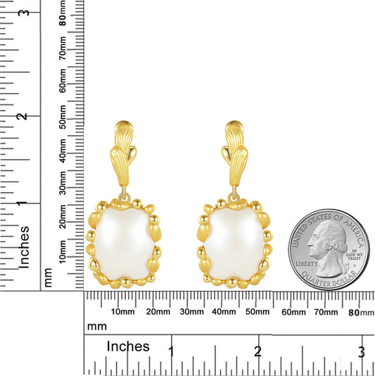 Orecchini pendenti quadrati con fiori dorati e perle barocche vintage, realizzati a mano da Kemstone, originali, per donna, in lega da 50 mm x 22 mm, con chiusura a clip sul retro.