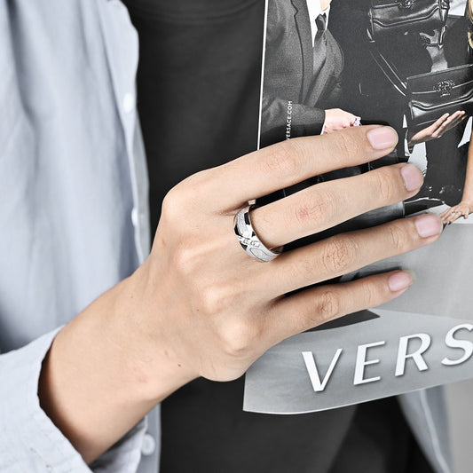 Kemstone Frost Texture Cubic Zirconia Stainless Steel Ring for Men – 8mm Band K-R777