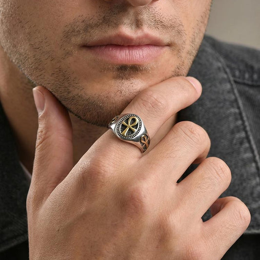 Kemstone Stainless Steel Vintage Ankh Cross Ring for Men – Retro Egyptian Design RC-1087