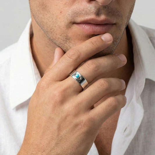 Kemstone Stainless Steel Turquoise Evil Eye Open Ring for Men RC-1022