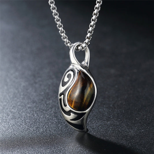 Kemstone Tiger Eye Stone Pendant Necklace for Men – Stainless Stee PN-2305