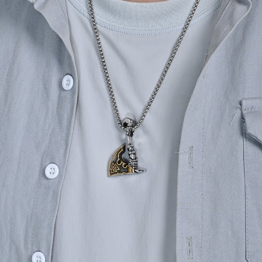 Kemstone Viking Triangle Knot Stainless Steel Axe Pendant Necklace for Men – Silver & Gold PT639