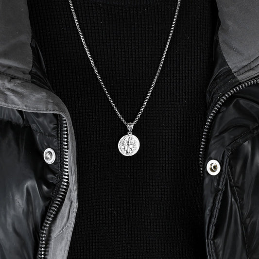Kemstone Stainless Steel Saint Benedict Exorcism Coin Pendant Necklace for Men K-PT549
