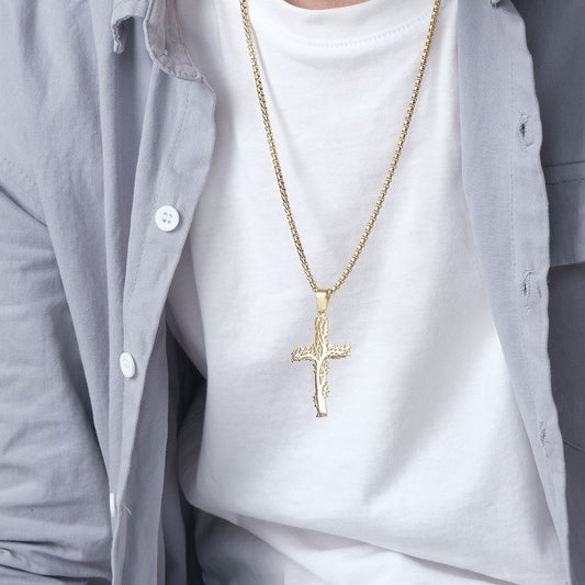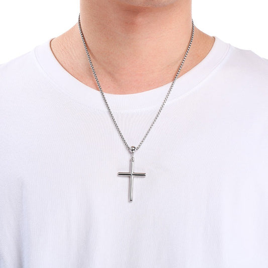 Kemstone Titanium Steel Cross Pendant Necklace for Men – Polished Design K-PT411