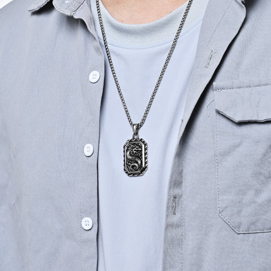 Kemstone Stainless Steel Dragon Pendant Necklace for Men – Zodiac Dragon Head Design K-PT579